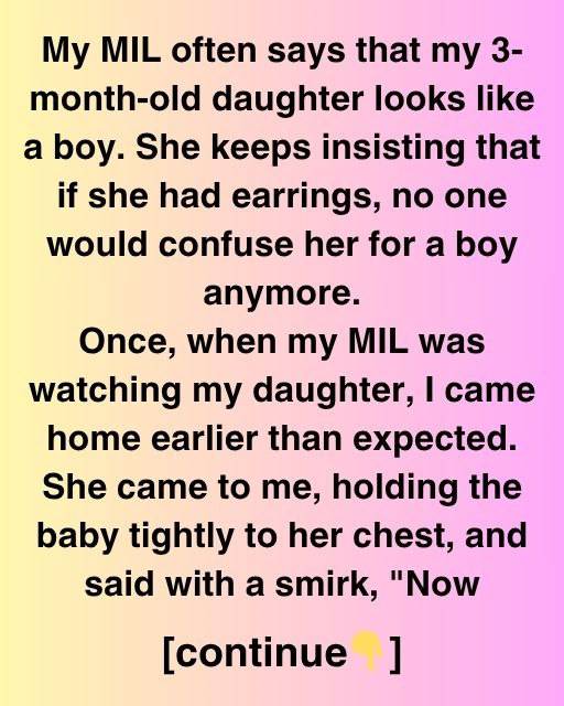 My MIL constantly comments my 3-month-old kid looks boyish. She claims that if she had earrings, no one would mistake her for a boy. I came home early once when