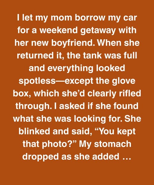 I let my mom borrow my car for a weekend getaway with her new boyfriend. When she returned it, the tank was full and everything looked spotless—except the glove box,