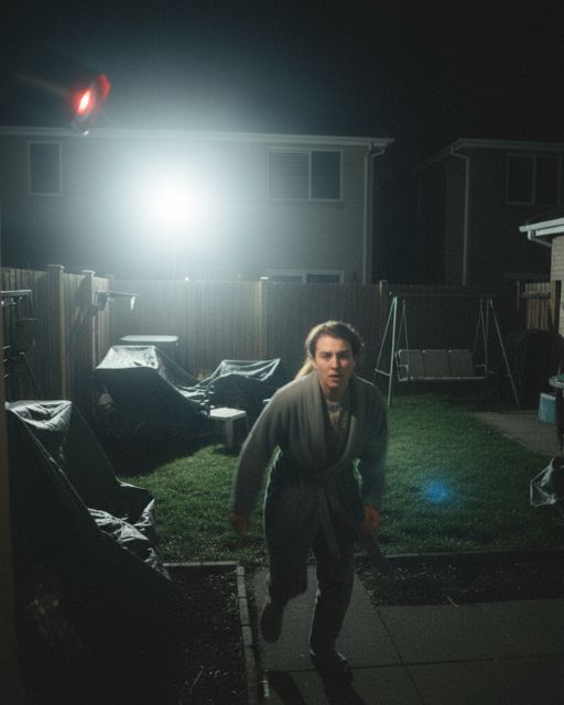 I’m halfway through rinsing a mug when the floodlight blinks on across the fence. It’s bright noon, no wind, no raccoons. I crack the back door—red LED. I stay inside—nothing.