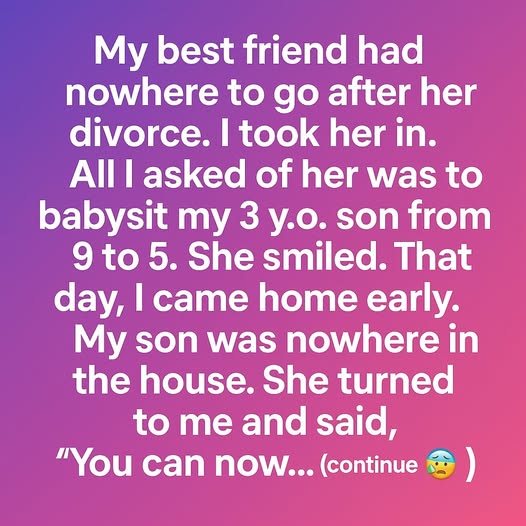 My best friend had nowhere to go after her divorce, so I took her in. All I asked was for her to babysit my 3-year-old son while I worked from
