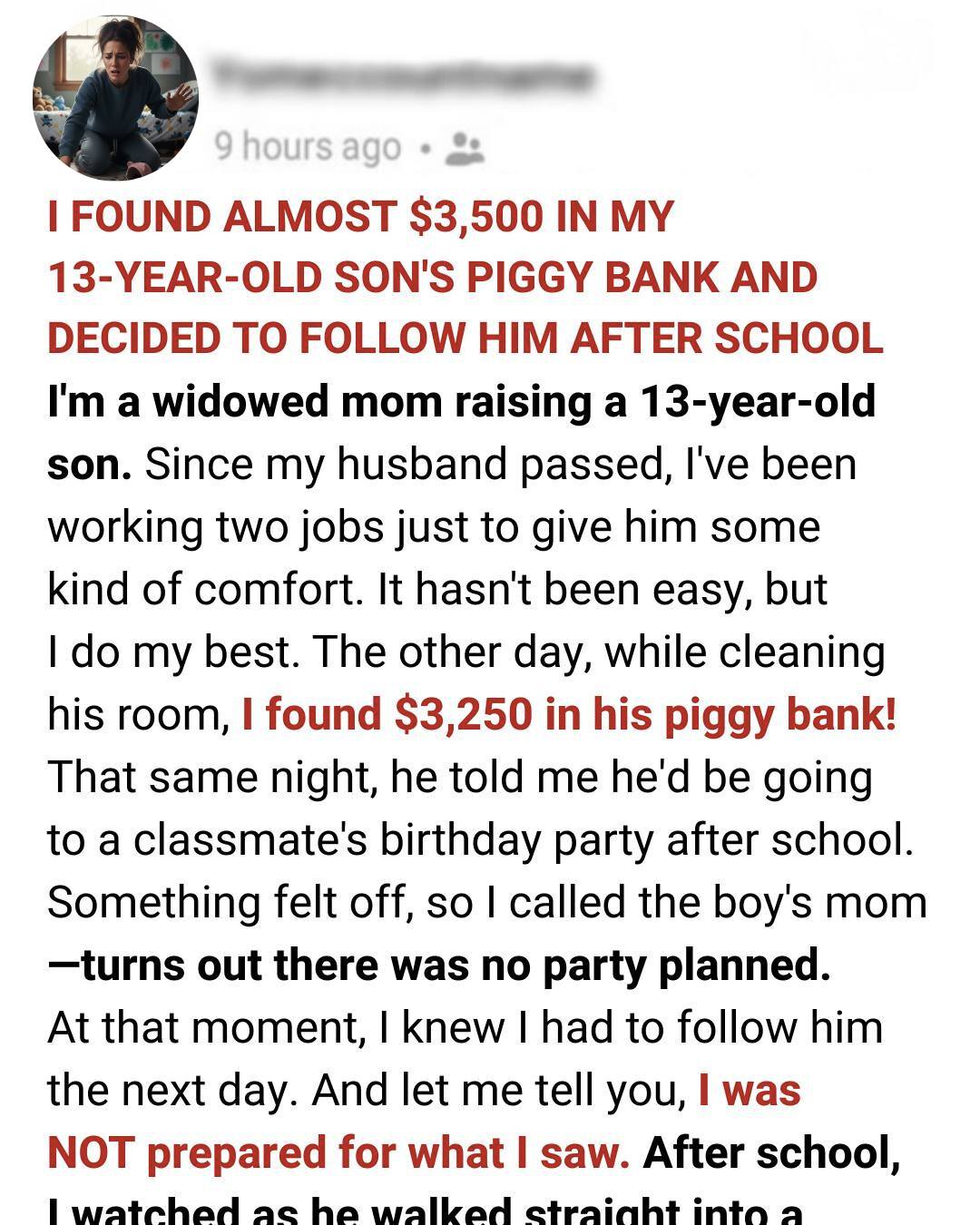 It was a shock I’ll never forget: finding $3,250 hidden inside my 13-year-old son’s piggy bank. My heart froze. Where could he possibly have gotten that kind of money? Determined to