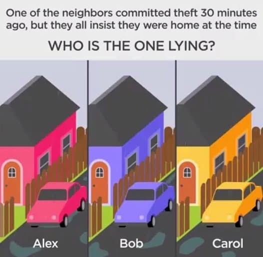 One of them was lying. Who is the thief? Can you figure out who the thief is in this photo above? Good luck and pass it on! A B C