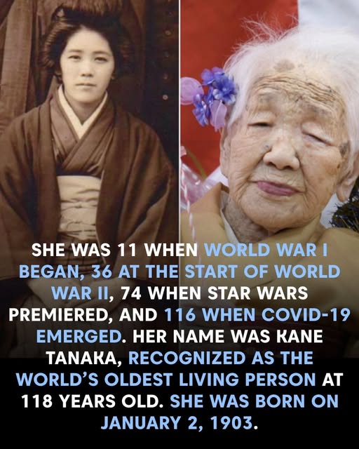 This incredible image pays tribute to Kane Tanaka, a woman whose life spanned over a century of profound global transformation. Born on January 2, 1903, Tanaka lived through some of