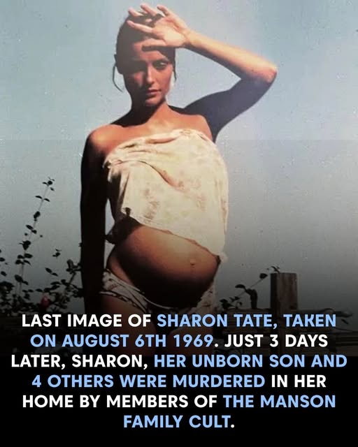 This haunting final image of actress Sharon Tate, captured on August 6, 1969, stands as a poignant reminder of a life and a bright future cut short. Just three days